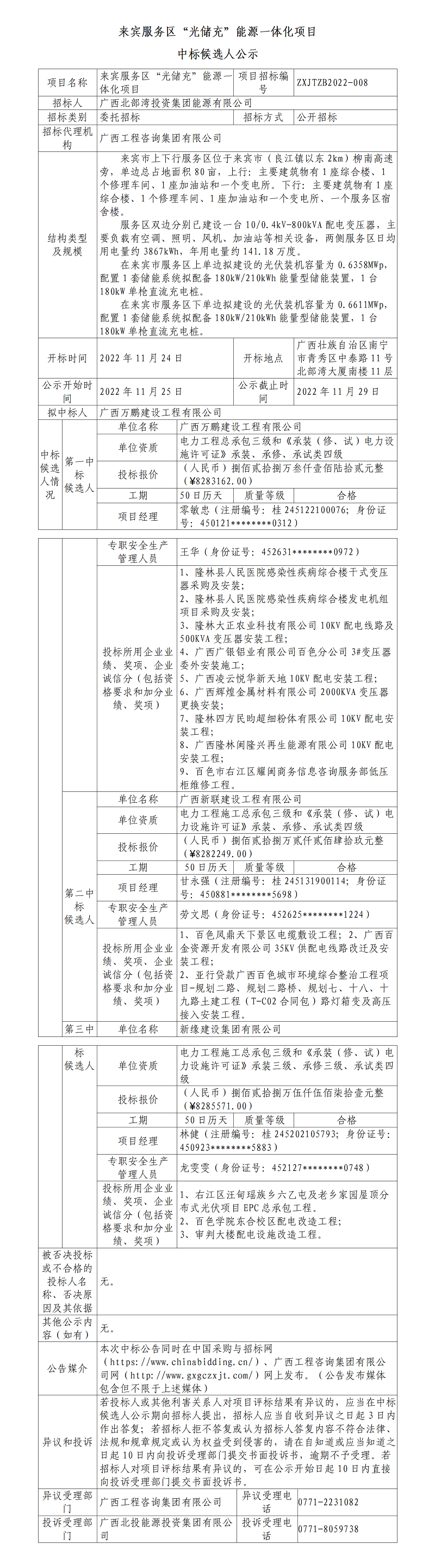 來賓服務(wù)區(qū)“光儲充”能源一體化項目中標(biāo)候選人公示