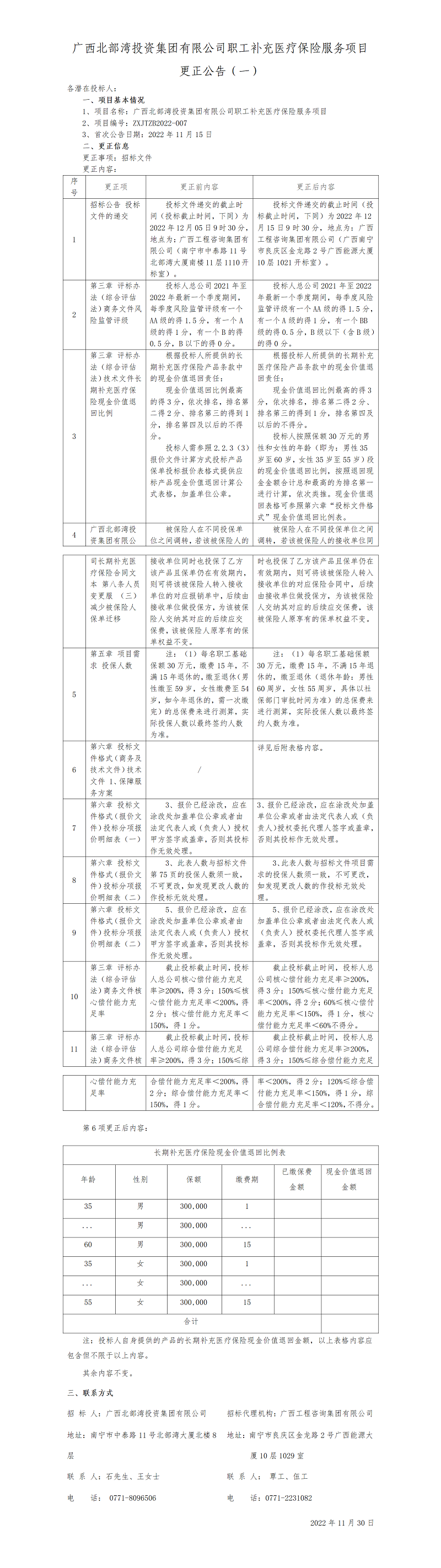 廣西北部灣投資集團有限公司職工補充醫(yī)療保險服務項目更正公告(一)