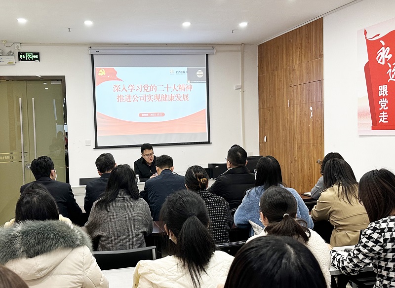 黨的二十大勝利召開(kāi)以來(lái),為進(jìn)一步學(xué)習(xí)宣傳貫徹黨的二十大精神,廣西工程咨詢集團(tuán)有限公司領(lǐng)導(dǎo)班子成員分別走進(jìn)各基層黨支部、基層業(yè)務(wù)一線,以一場(chǎng)場(chǎng)生動(dòng)的宣講、一次次深入的交流,全面系統(tǒng)、生動(dòng)深入地宣講黨的二十大精神,迅速在公司上下掀起了學(xué)習(xí)宣傳貫徹黨的二十大精神的熱潮,讓黨的二十大精神在工作中走深走實(shí)、見(jiàn)行見(jiàn)效。