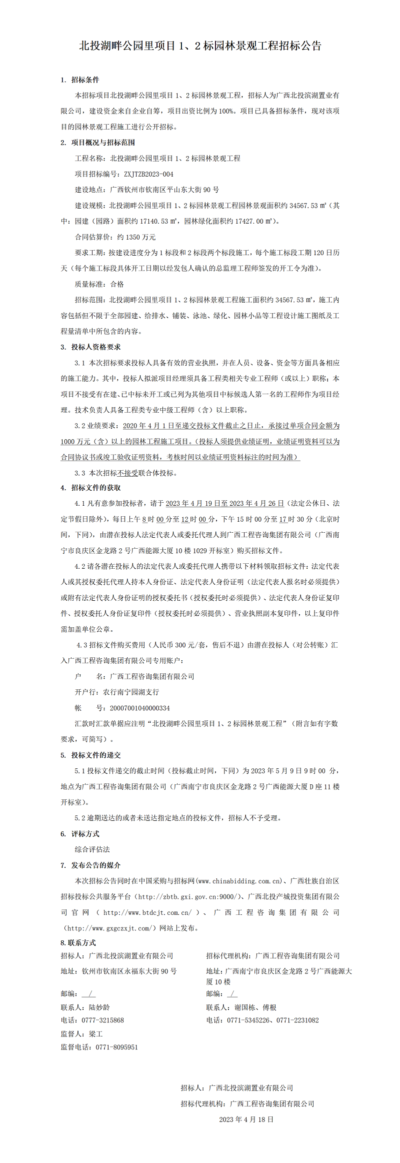 北投湖畔公園里項(xiàng)目1、2標(biāo)園林景觀工程招標(biāo)公告