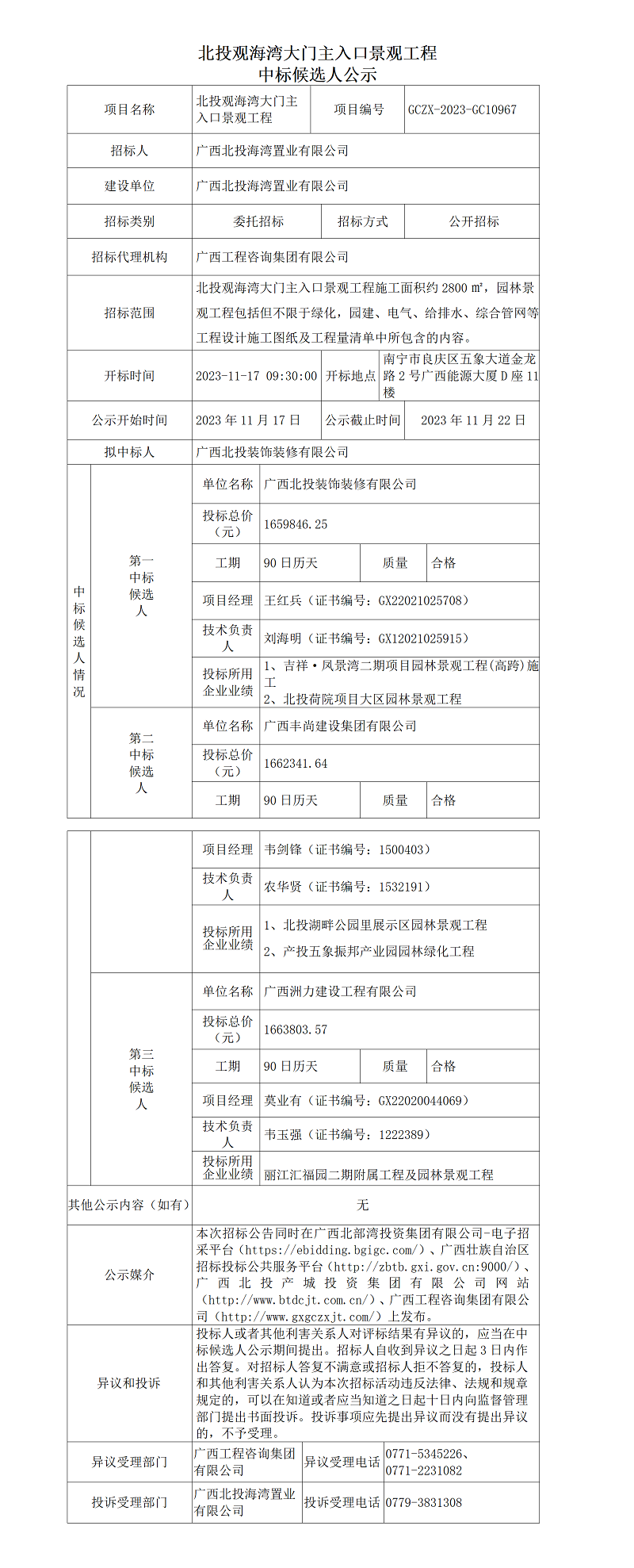 北投觀海灣大門主入口景觀工程 中標(biāo)候選人公示